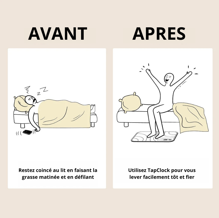 Le TapClock Réveil Tapis vous oblige à vous lever pour l’éteindre, éliminant la tentation du snooze.